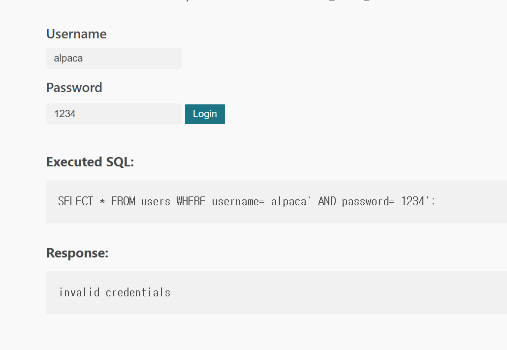 먼저 alpaca : 1234를 먼저 입력해 봄