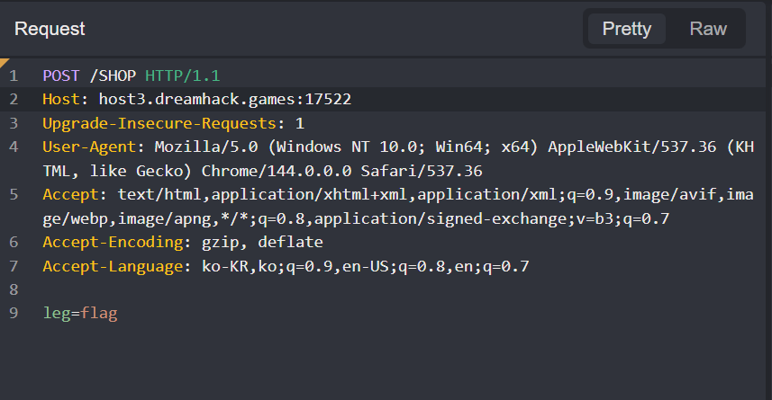 또한 leg= FLAG인지만 파악하기 때문에 flag로 바꿔줘도 위 코드에서 대문자로 바꿔준대서 FLAG로 해석하게 되어 우회가 가능
