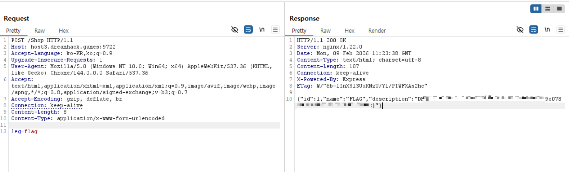 POST로 바꿔준 후 /shop, /shop/이 우회되니 대문자로 바꿔준다.
