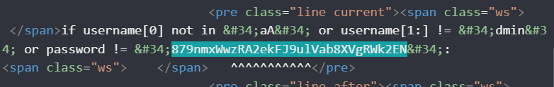 if username[0] not in "aA" or username[1:] != "dmin" or password != "**REDACTED**":