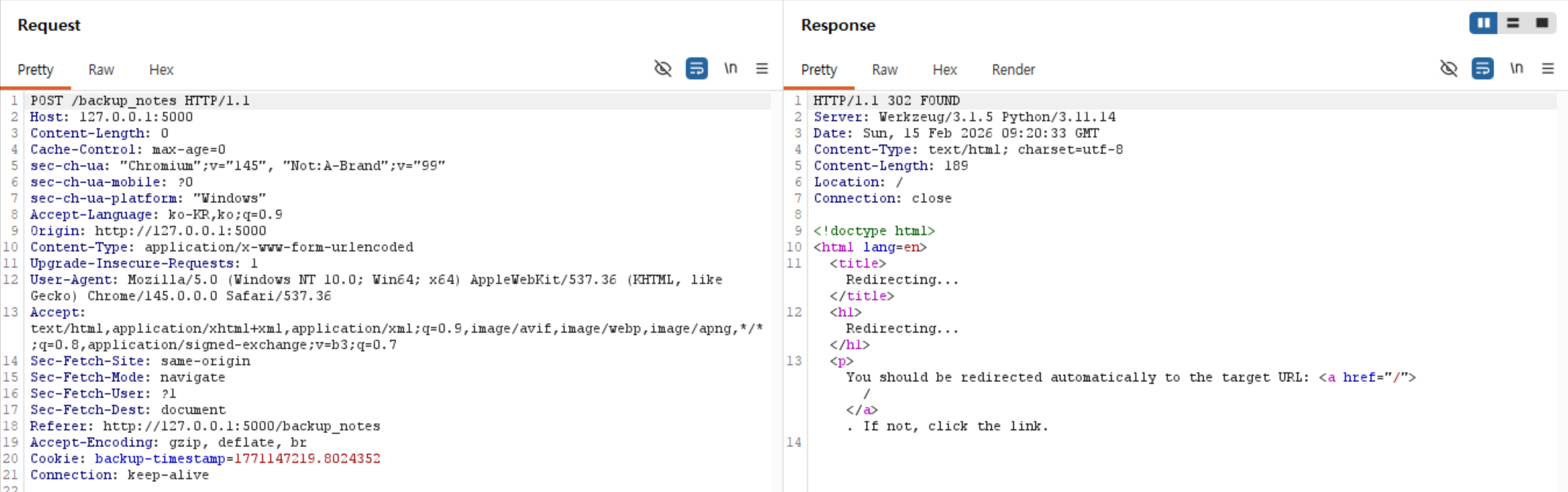 POST 요청에서 Cookie에 backup_timestamp가 찍힌 것을 확인할 수 있다.