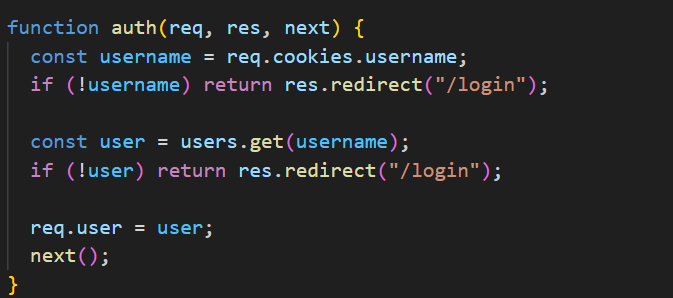 - username 쿠키를 읽어서 users Map에서 사용자를 찾고 없으면 /login 리다이렉트