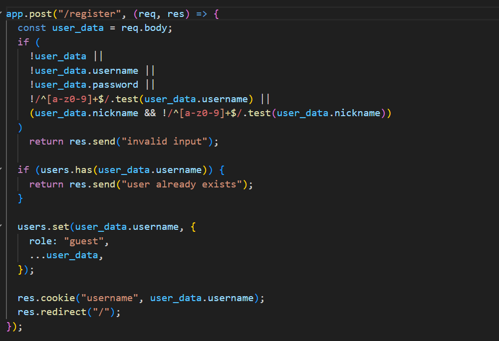 - 신규 유저를 role:"guest", ...user_data로 저장 후 username 쿠키 설정