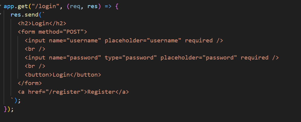 - req.body에서 username/password 추출, Map에서 조회 후 평문 비교.