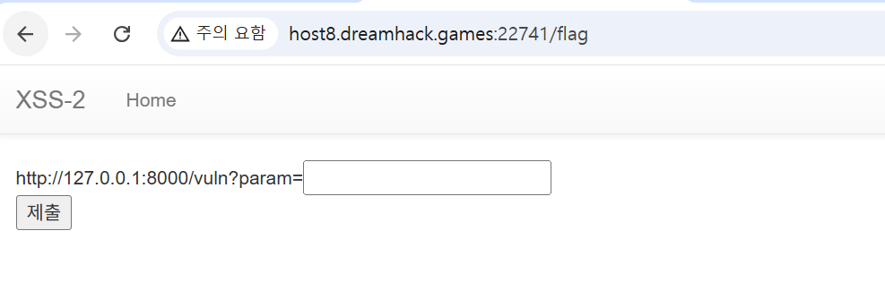 - 봇이 여는 URL은 http://127.0.0.1:8000/vuln?param= "사용자 입력" 형태