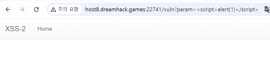 - XSS - 1과 달리 /vuln 엔드포인트에 <script>alert(1)</script> 같은 payload 입력해도 스크립팅 되지 않음